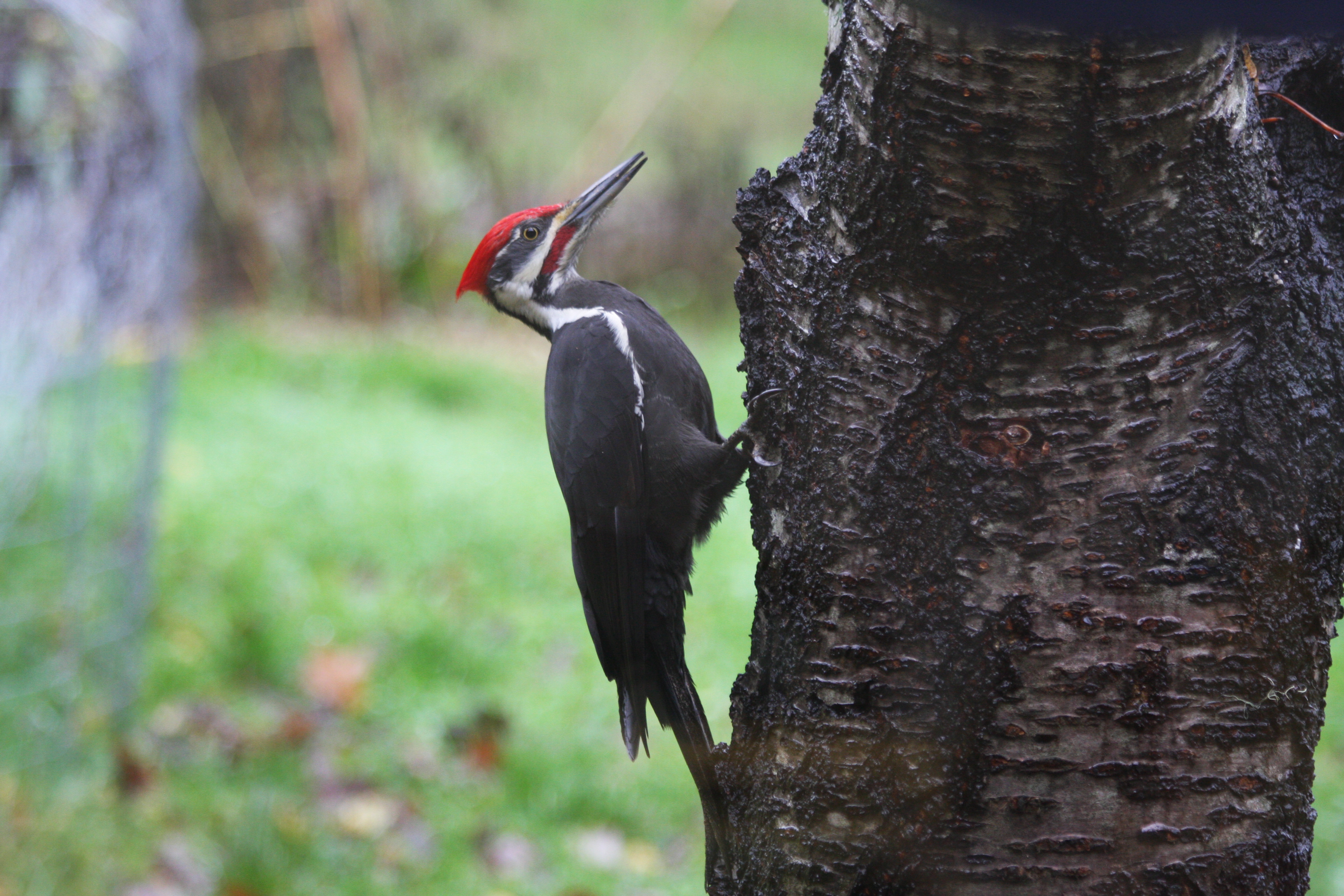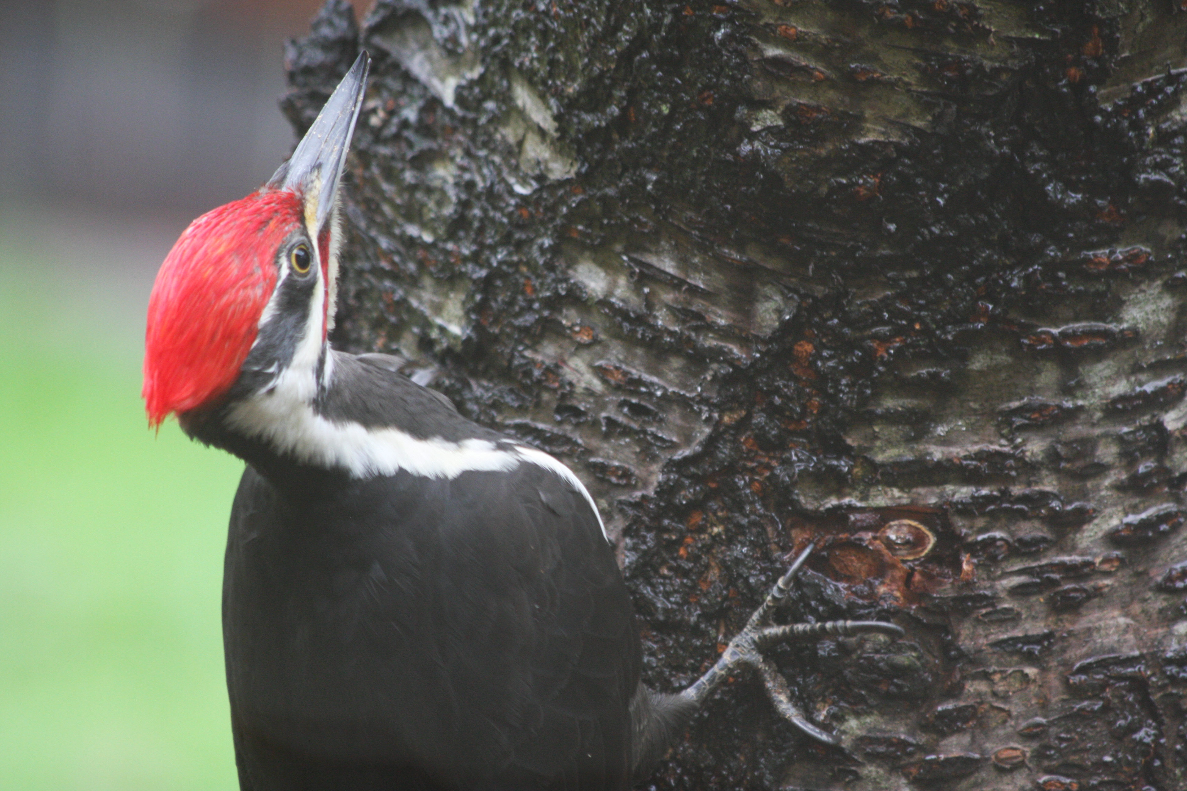 Alas, later that winter, I noticed my wasp’s cluster of burrows in that log had been excavated by one of our resident Hairy Woodpeckers. They find all the buried bugs – especially it seems they find the ones in the wood siding of our house. We have a line of little holes pecked all ‘round. Naughty birds!