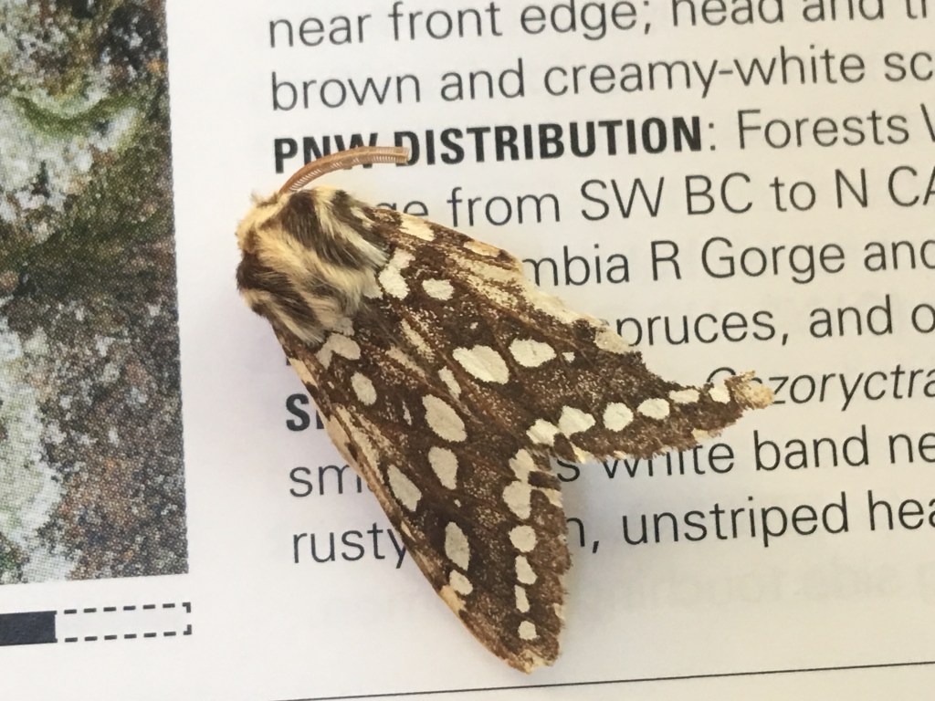 These moths are fairly common throughout the San Juan Islands. The larvae feed on Douglas Fir (Pseudotsuga menziesi) and other conifers. The name, argentum comes from Latin referring to the silver spots on the wings of adults.