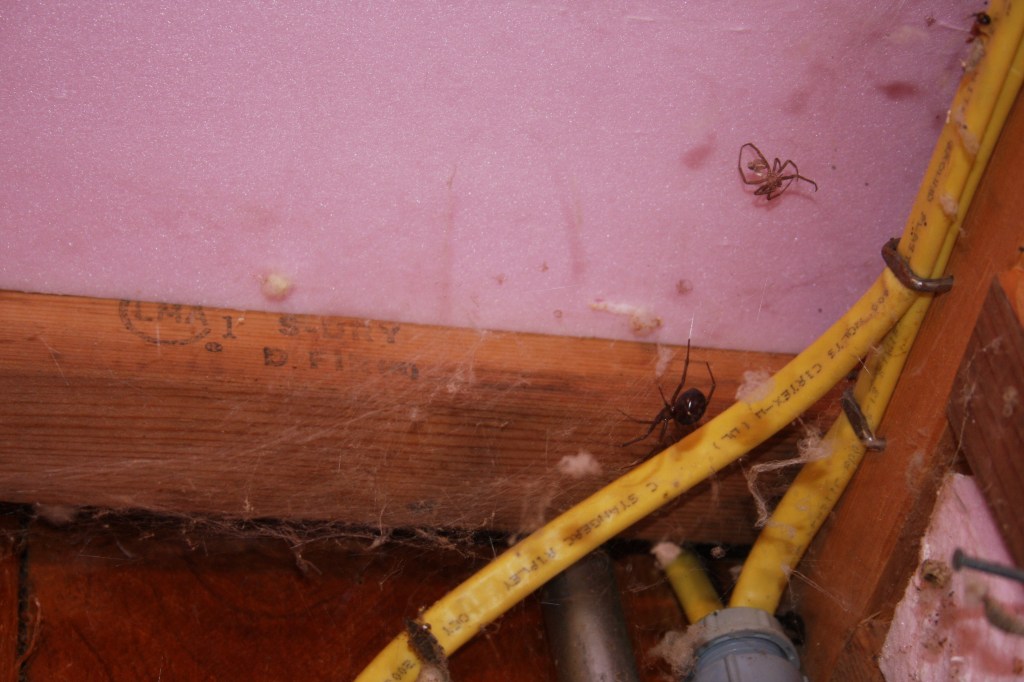 When I was in the well pump house, I found three females, each in her own corner, tending her egg sacks.