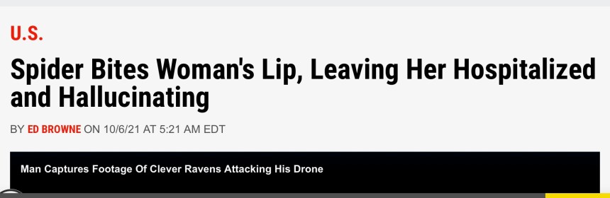 It’s got to be fantastic to be featured in Newsweek, right? Please note my sarcasm! The media is a huge problem when it comes to sensationalizing stories and egging on the screaming fear folks have around spiders. You’re welcome to take a look at this story yourself, but please come back because I’m gonna tell you what’s wrong with it!