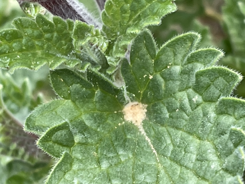 Since I often enjoy walking on our road on sunny days, I started looking for her when I passed her home – the Mullein “apartments.” It wasn’t just the spiders enjoying the sunny housing complex, but these units housed a few other species as well. I found some Stilt Bugs (Neoneides sp.) and some Pentatomidae hiding in the fuzzy star shaped trichomes (little hairs) of the Mullein leaves.