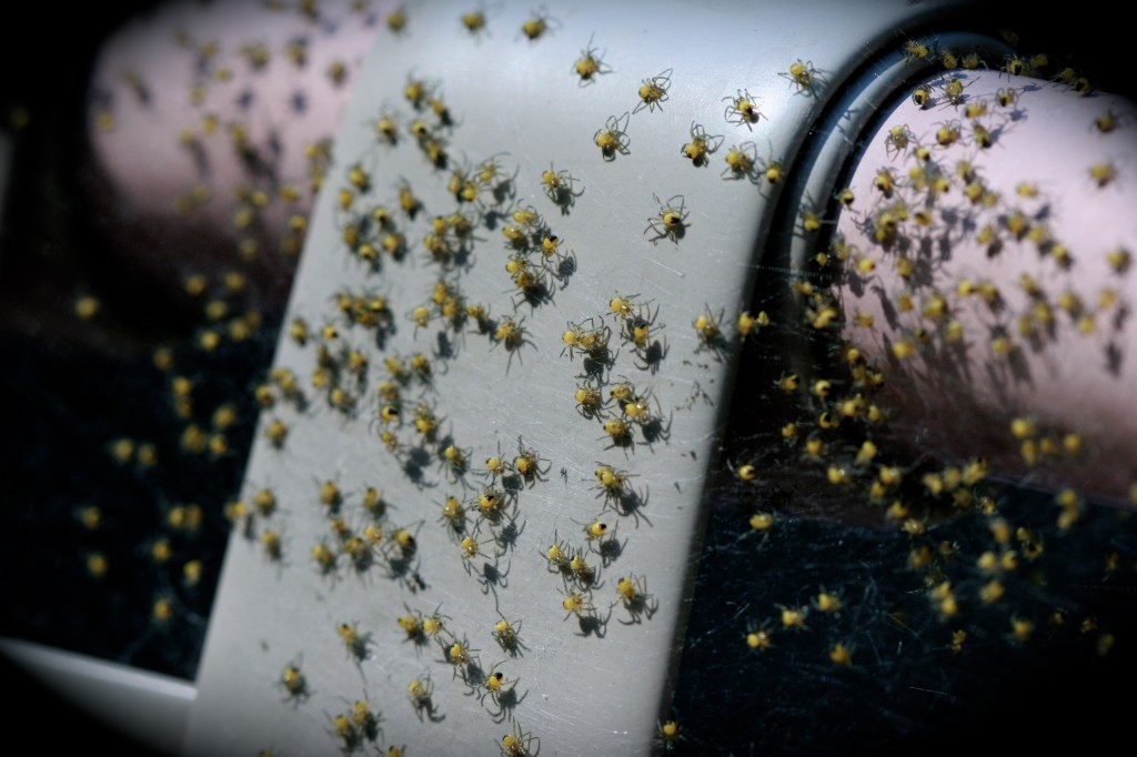 Spiderlings with Pollen Plates Orb Weaver Spider on Web