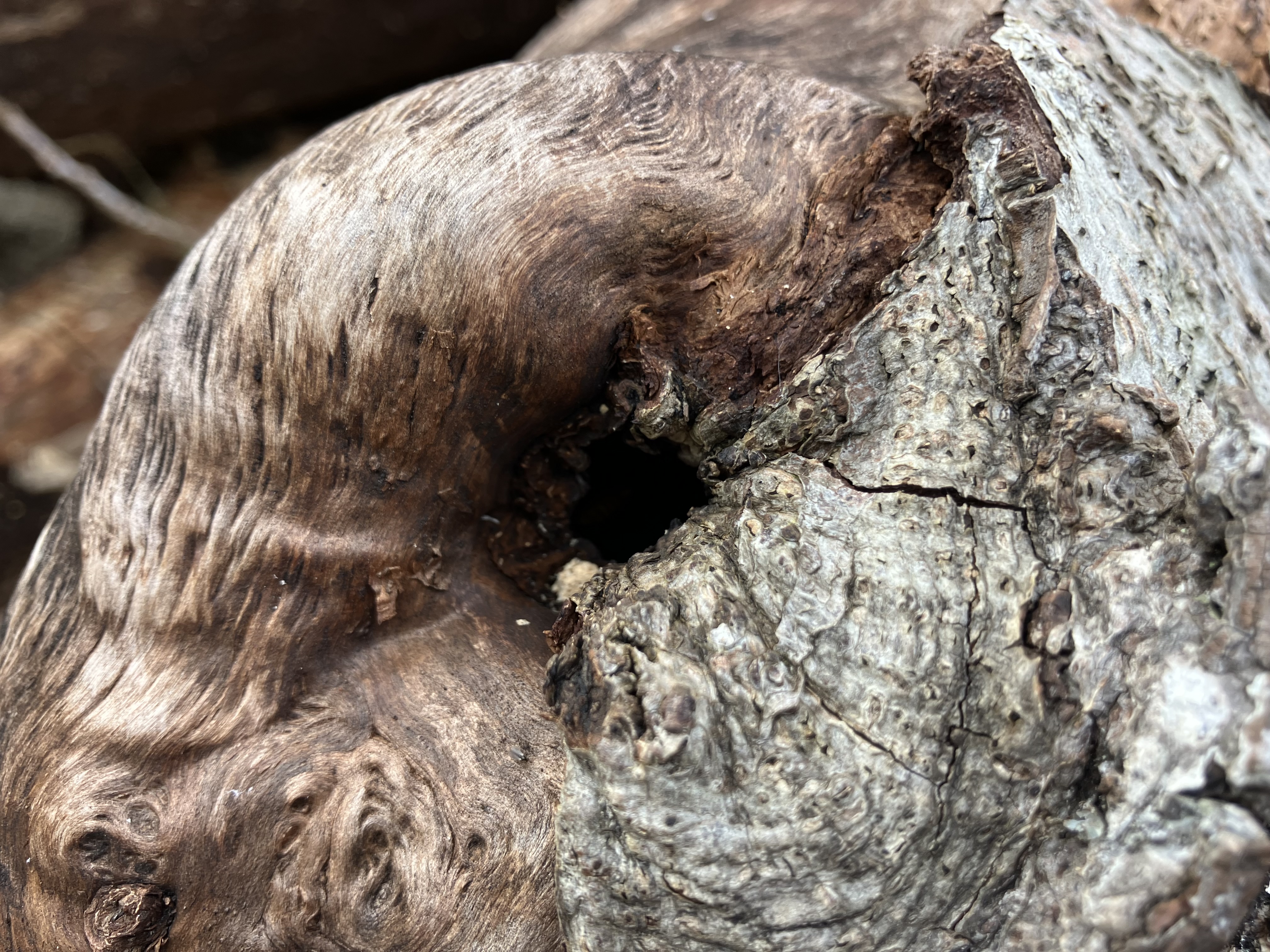 When I got home, I left the cup by the door for a bit to unload my groceries, but got my camera afterwards and carried my hitch-hiker over to a stack of alder logs we collected and piled up into a wildlife stack. Those logs are “dead” to most humans, but for all the little critters that were in them when they blew over and broke into chunks, they are FULL of life! One had a perfect knot hole that my wasp targeted right away and will probably stay holed up for the better part of next week since we have rain in the forecast. I wish more people would see dead and dying trees as something of value (other than to chip or burn). They are stores of food for birds, and shelter for many other organisms. Dead and dying trees are often more interesting to me than live ones. You just have to change your perspective and perhaps you will see what I do too!