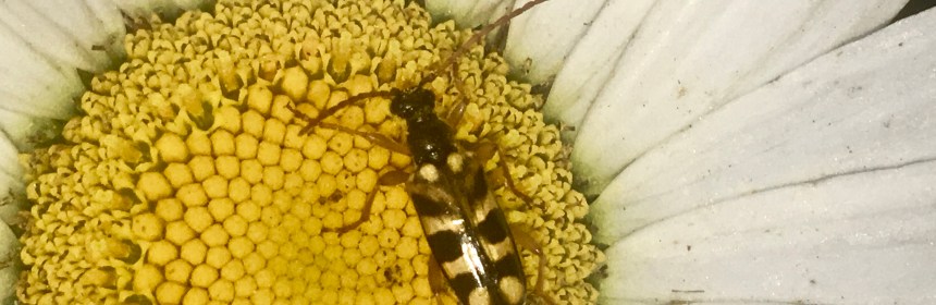 Xestoleptura crassipes is a species of flower longhorn beetle. Taxonomically it is placed in order Coleoptera, family Cerambycidae. The species name “crassipes” means “thick-legged.” Adults are attracted to flowers (June-September) and larvae are wood borers, found in forested areas and associated with firs and oaks. Adult body length approximately 10-17mm.