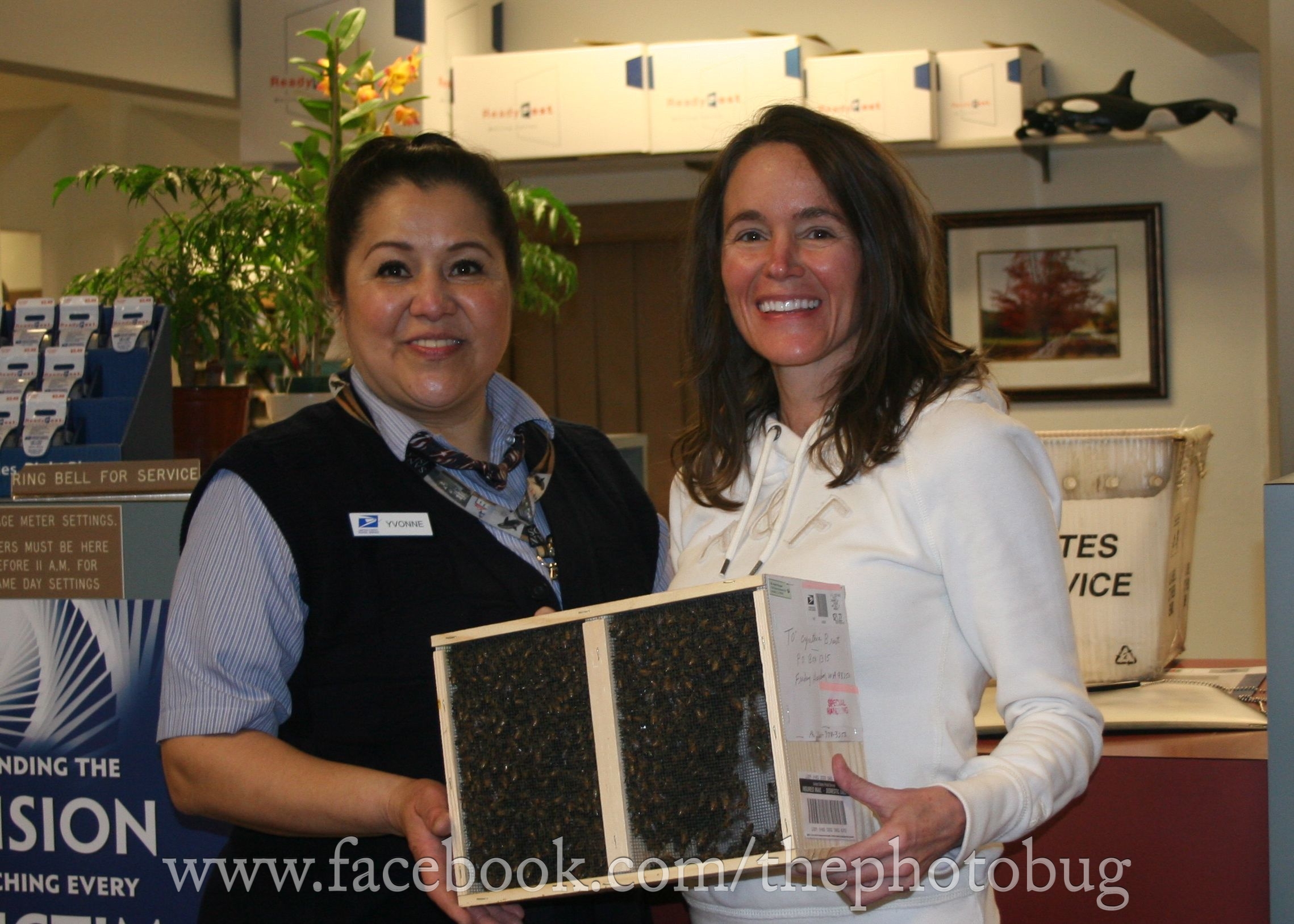 The bees came today – April 11, 2012, after shipping from Oroville, CA on April 9.  I picked them up this morning at the Friday Harbor Post after they called at 07:30 a.m. to let me know the bees had arrived.