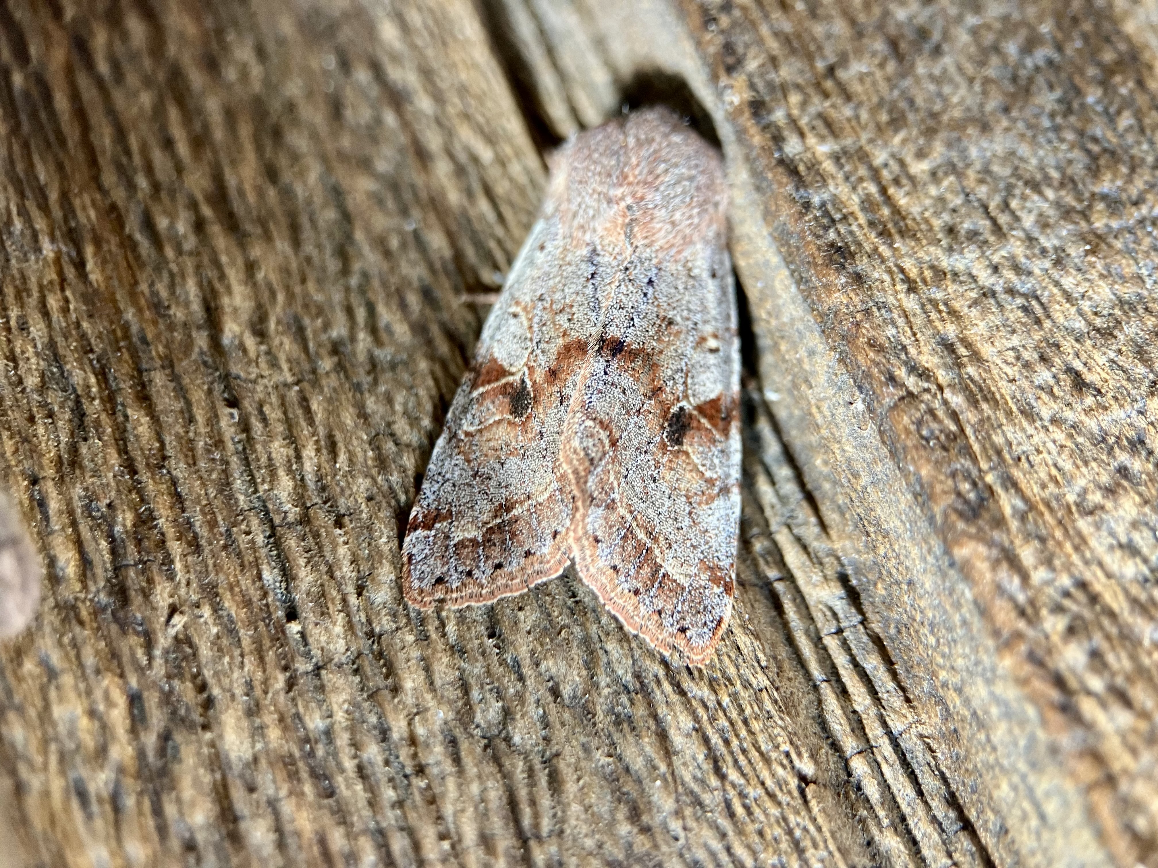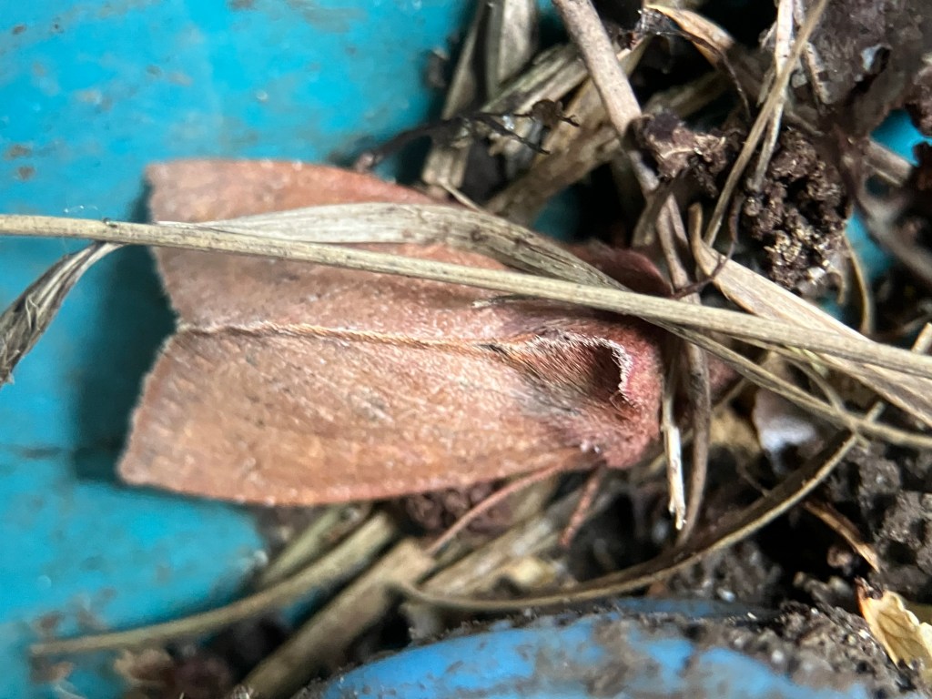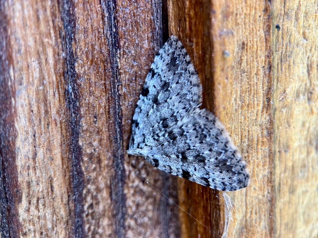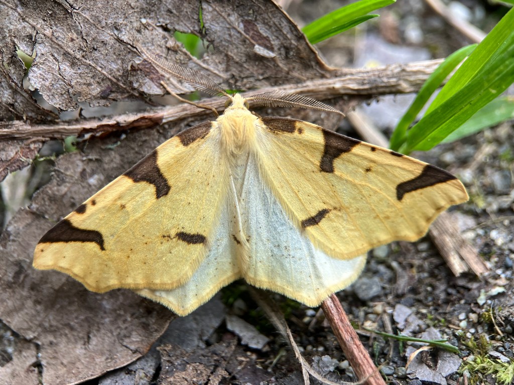Larvae are twig mimics. Pupae sleep through the winter wrapped in a leaf, another reason to “leave the leaves” and refrain from burning or bagging and discarding the leaves around your home. You could inadvertently impact overwintering species like these and others. Adults are approximately 14-20mm (forewing length). You will see adults in flight between April-June in our area. From what I have been able to find as to the etymological meaning of the name, Neoterpes may translate to “new delight” and trianguliferata refers to the triangle-shaped markings on the forewings. It was indeed a delight to see this beauty today! A bit of sunshine on a rainy spring day.