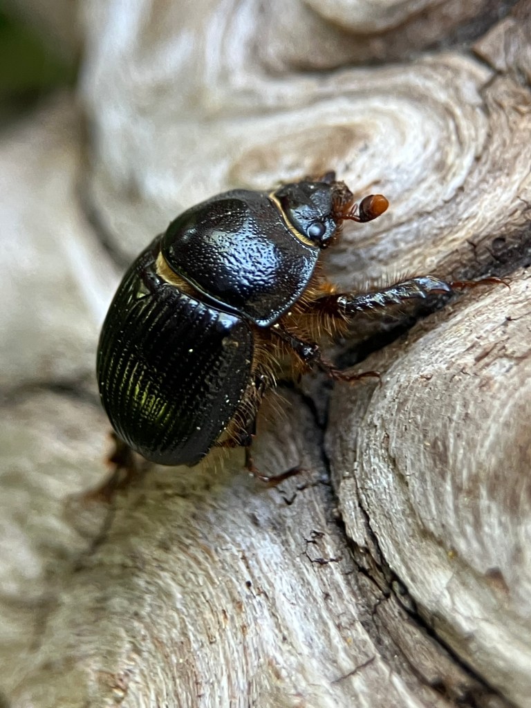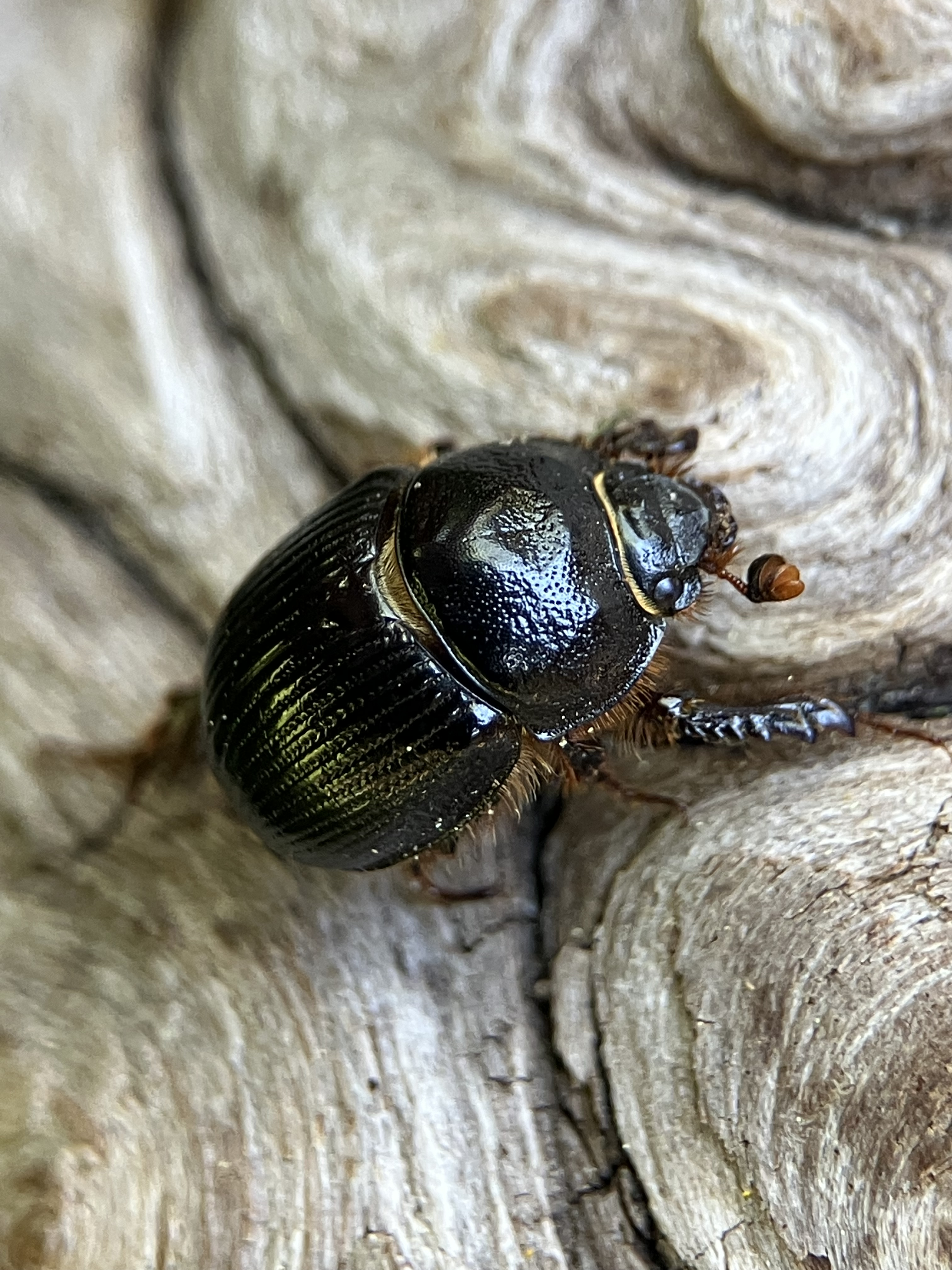 These beetles are in the family Geotrupidae. “Geo” from Greek, meaning earth, and “trypetes” or “trupes” which means to bore or drill. In Europe, these beetles are referred to as dor beetles. “Dor” because they hum. Check out the etymology I’ve copied for you below for the word Dor.
