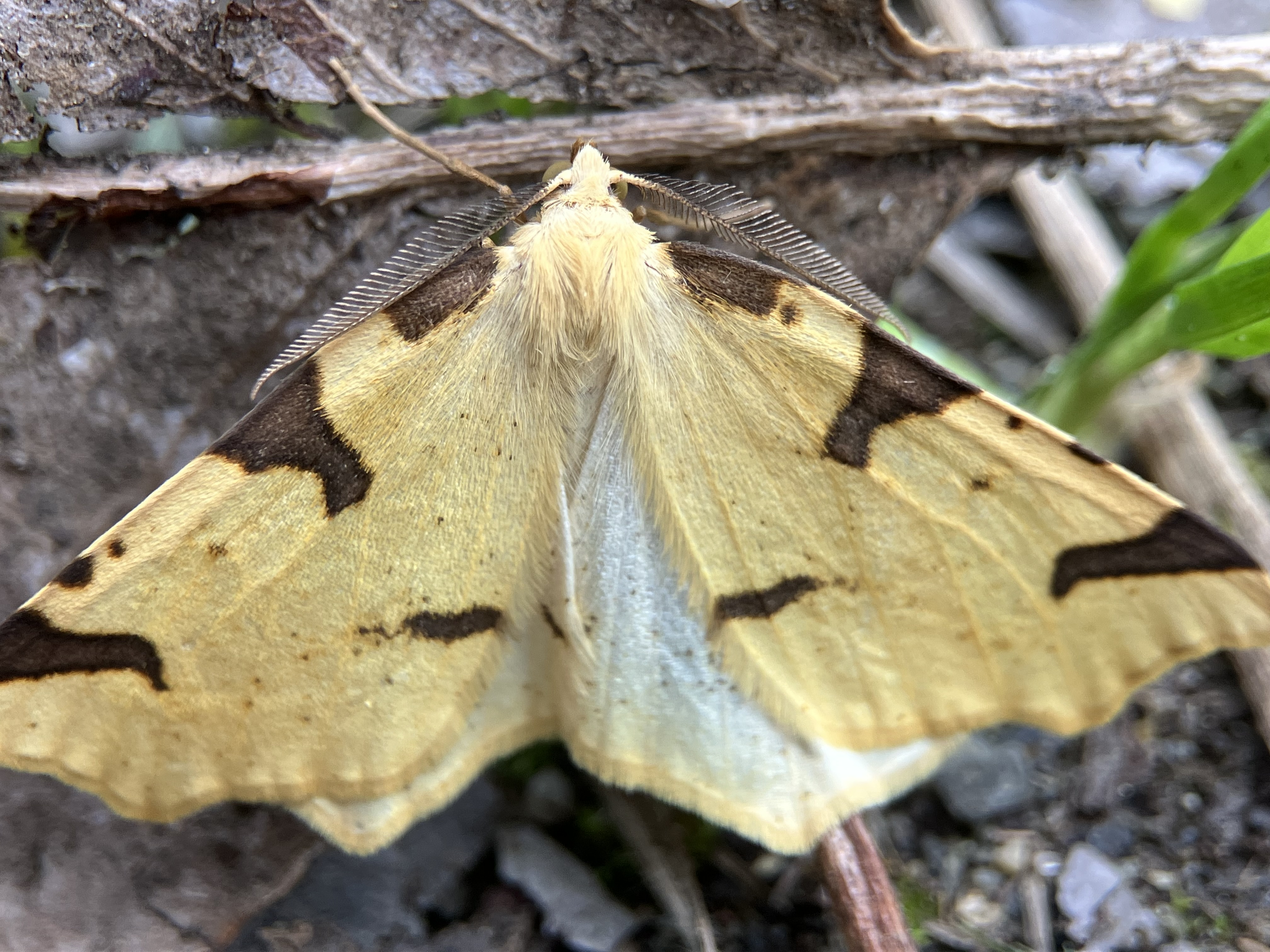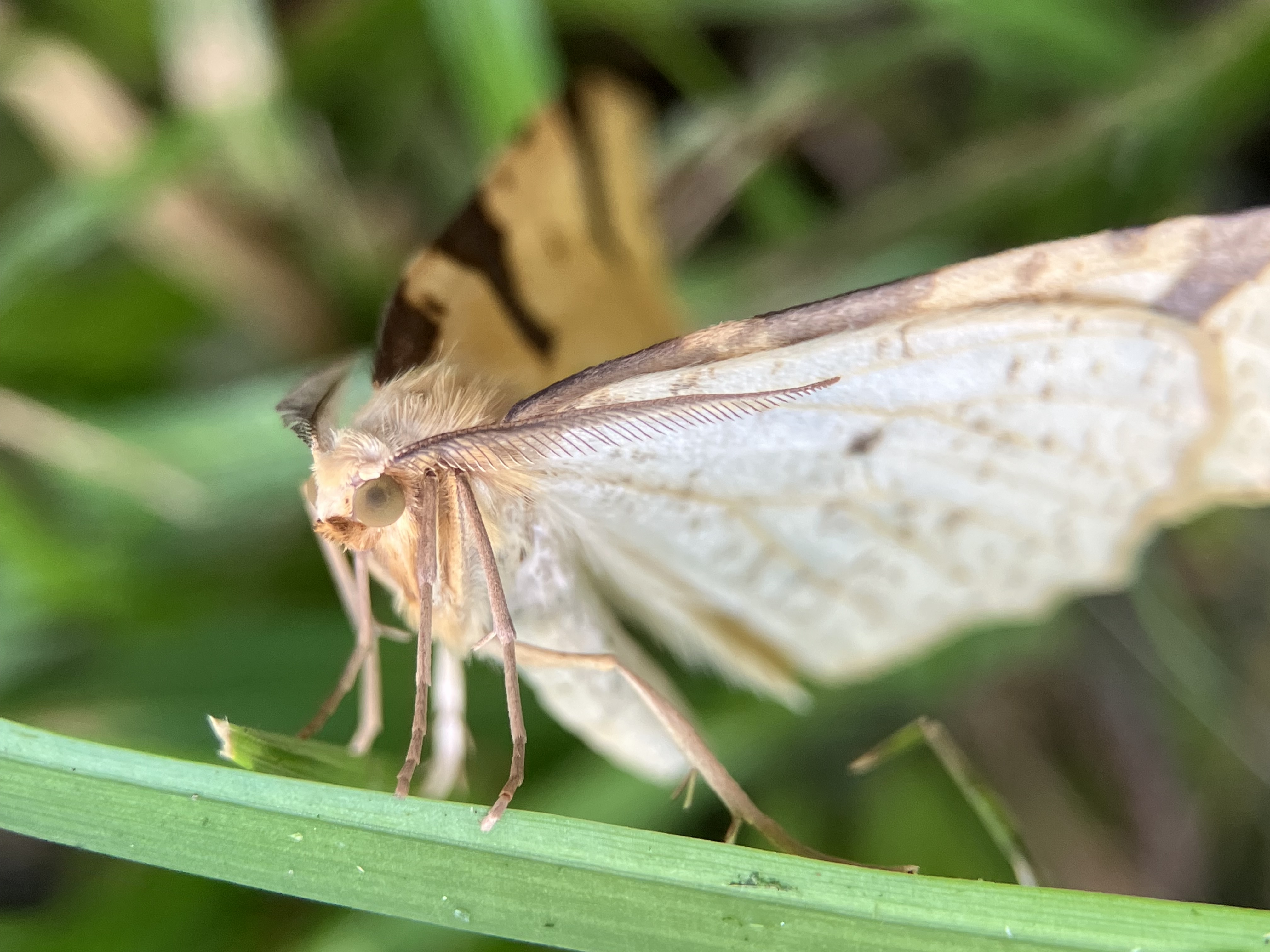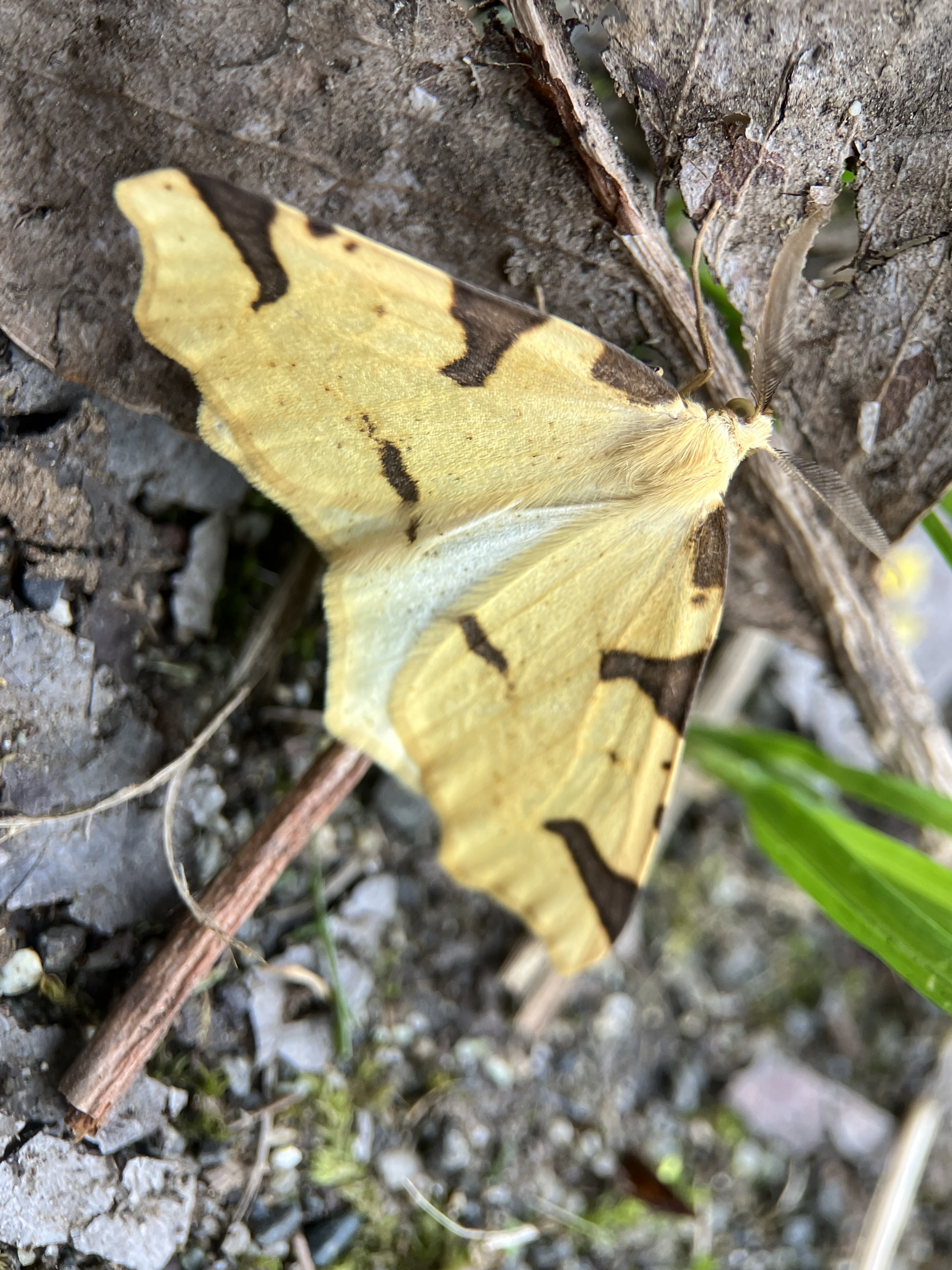 I found the most beautiful creature at my moth light this morning. It is the Canary Thorn Moth (Neoterpes  trianguliferata ). I was surprised to see anything there given the drop in temperatures we’ve had the past few days. After a few photos, I got too close and he flew out of the open barn area into some grass, struggling a bit in the wind, so I was able to carefully coax him back into an egg carton to shelter the day back undercover and out of the rain.