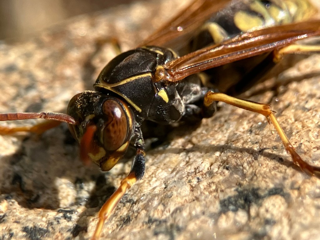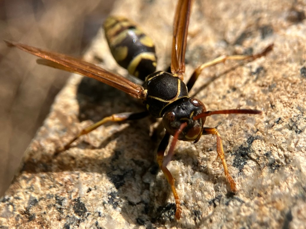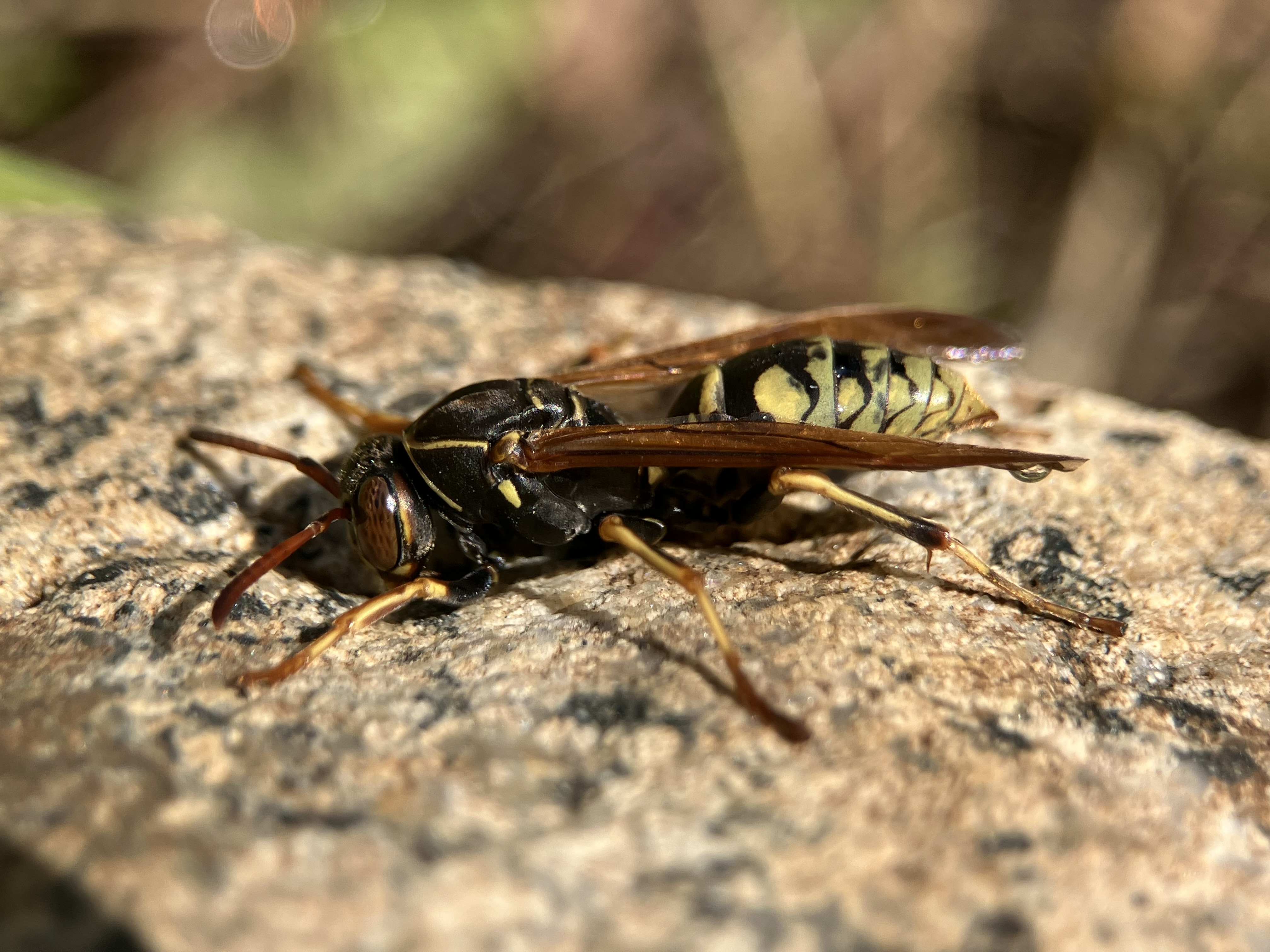It is believed the more frequently observed (P. dominula) are displacing native Polistes aurifer, but since it is more difficult for scientists studying insects in natural or wild habitats, most formal observations have taken place utilizing sites associated with man-made dwellings (Liebert, 2004). Liebert published a short communication in Insectes Sociaux (2004) where she describes finding ground nesting colonies of this species at an observation site in California, and concludes that the “displacement” theory may be overstated. However, given the loss of natural areas due to habitat loss/conversion, a decline in populations of the native P. aurifer (I believe) would more accurately be attributed to humans. Humans also unfortunately resort to wasp spray to eradicate nests around their homes without understanding that most nests pose minimal or no risk to human comings and goings.