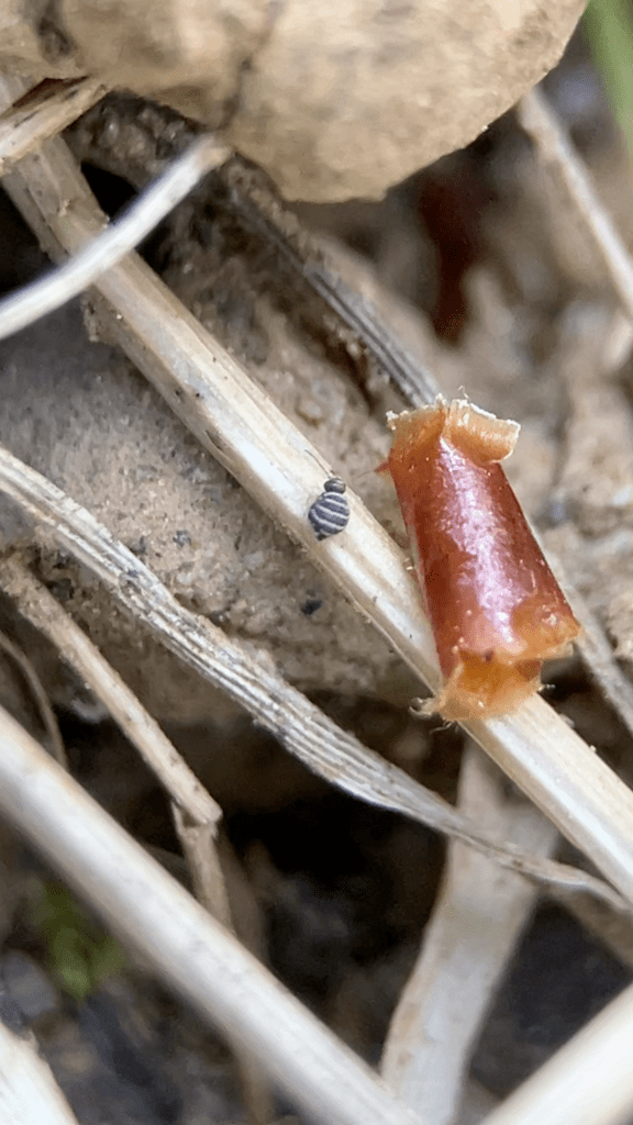 If you follow closely in the video here, you might notice that the individual I was tracking either pooped or laid an egg on that piece of straw (between the 45 and 55 second mark. I will add some still shots clipped from the video as well.