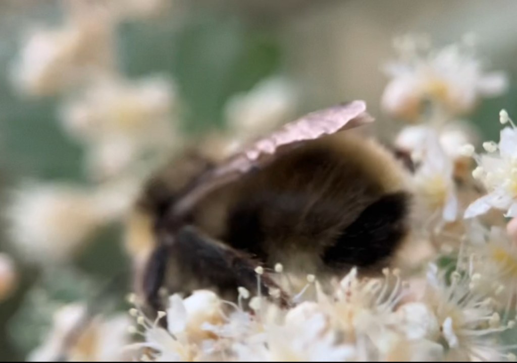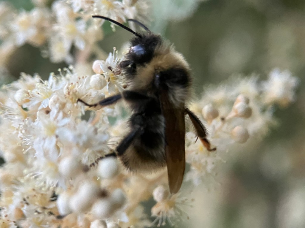Getting back to the other buzz in the Ocean Spray. The buzz I was so happy to discover is the bumble bee (Bombus flavidus ssp. flavidus). I didn’t make the identification to subspecies on my own. That was with the help of a fellow named John Ascher on iNaturalist. If you’re curious about his work, you can learn more here: https://extension.oregonstate.edu/podcast/pollination-podcast/137-john-ascher-problem-measuring-bee-decline