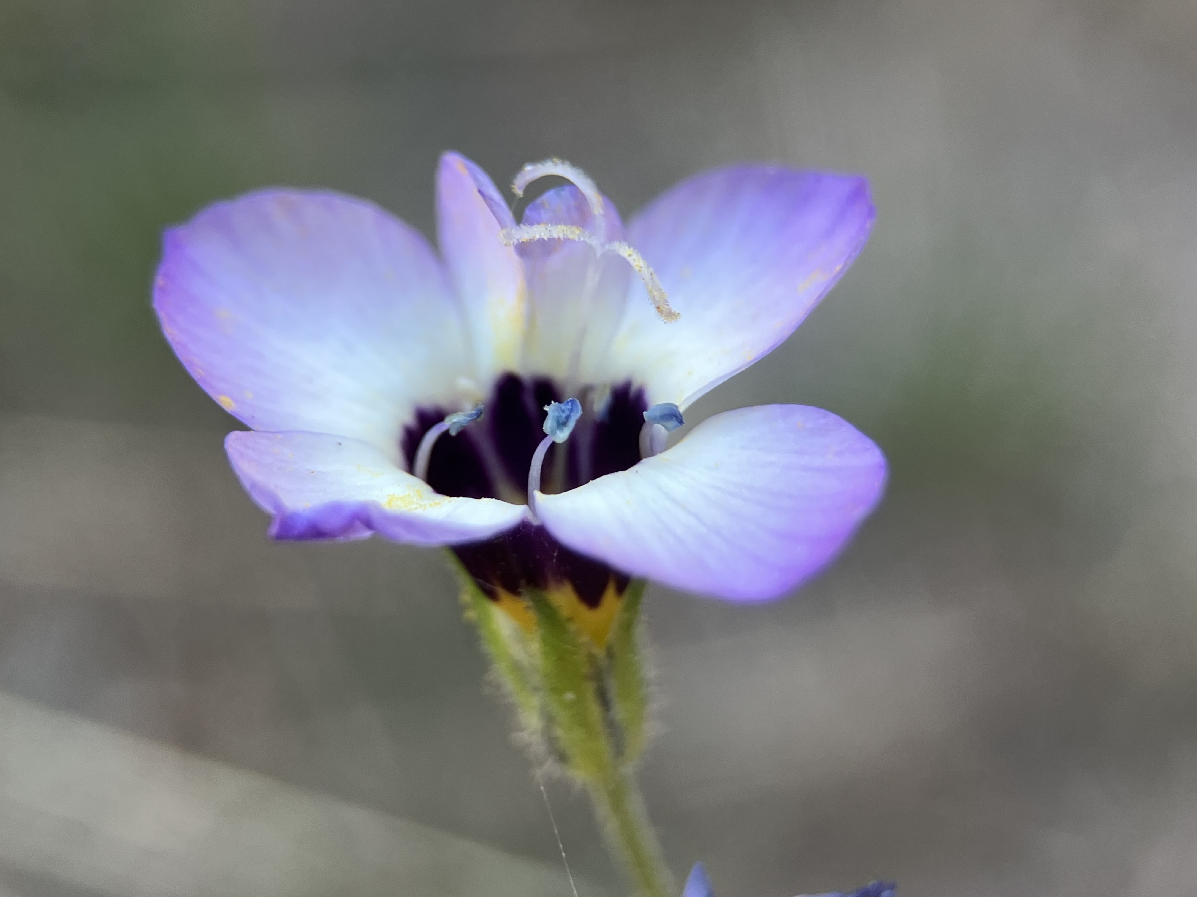 I’m quite fascinated by the rapid colonization of the very dry soil in the strip where our internet fiber cable was installed this past spring. Because disturbed soils can be great for seeding native wildflowers, I threw out several packets of a Pacific Northwest seed blend to see what might grow and I’ve been checking often to see what is coming up. In spite of the very dry weather we are having, there are some lovely Bird’s-eye Gilia (Gilia tricolor) blooming now.