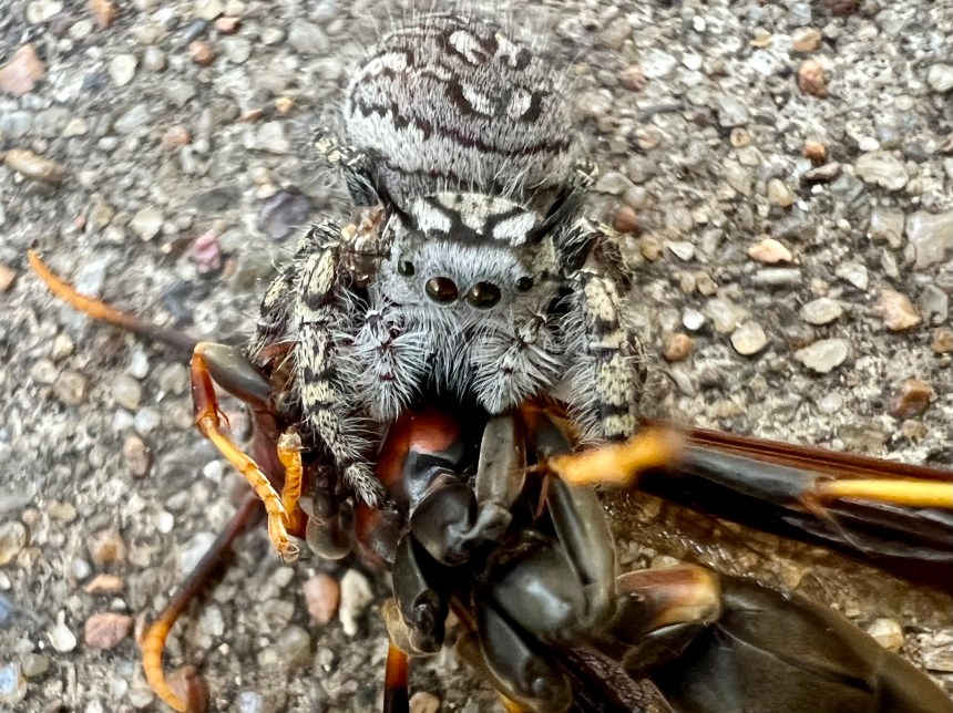While most of the wildlife has gone missing in Arbor Hills “nature preserve turned dog park,” I did find some pretty cool bugs, including the sweetest jumping spider. I also saw a snake and my husband spotted a turtle swimming in the creek. I’m going to feature the jumping spider first here, then that sweet little turtle swimming in the creek, but all the rest of our sightings and my photos of the preserve can be viewed in the slideshow below.
