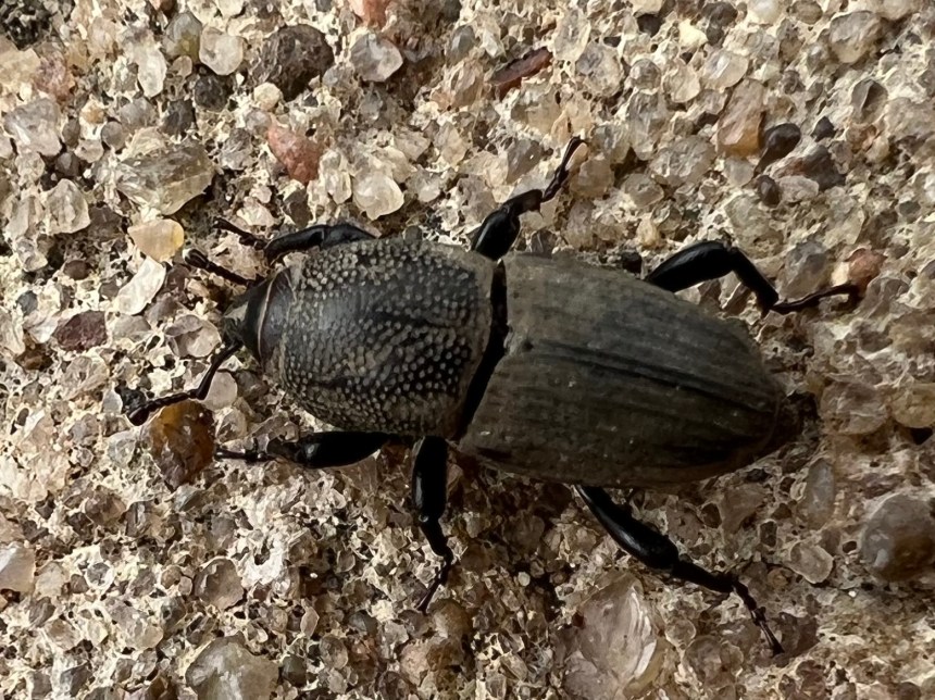 Conchuela is derived from Spanish and means the diminutive of concha shell. These bugs do indeed look like a little black shell with their hardened pronotum, scutellum and rounded body.