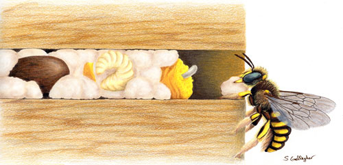 Wool Carder Bee nest – Illustration by Samantha Gallagher, University of Florida