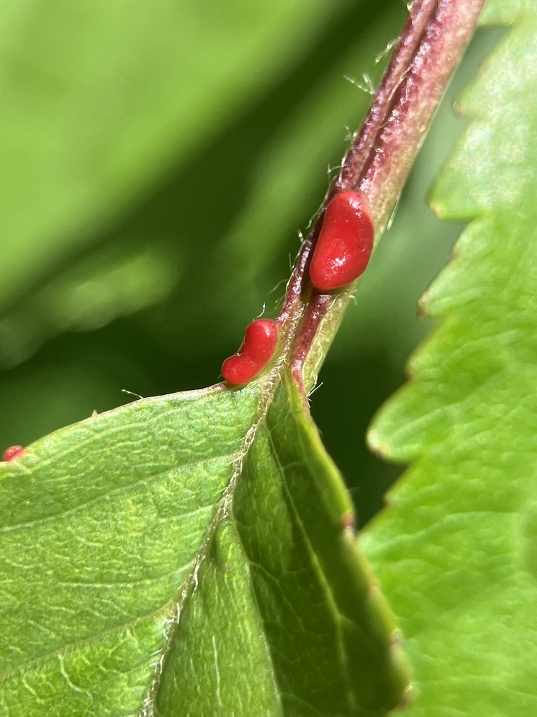Last year, I noticed in the spring that it put out these cool little red bumps on the stem just above the leaf.