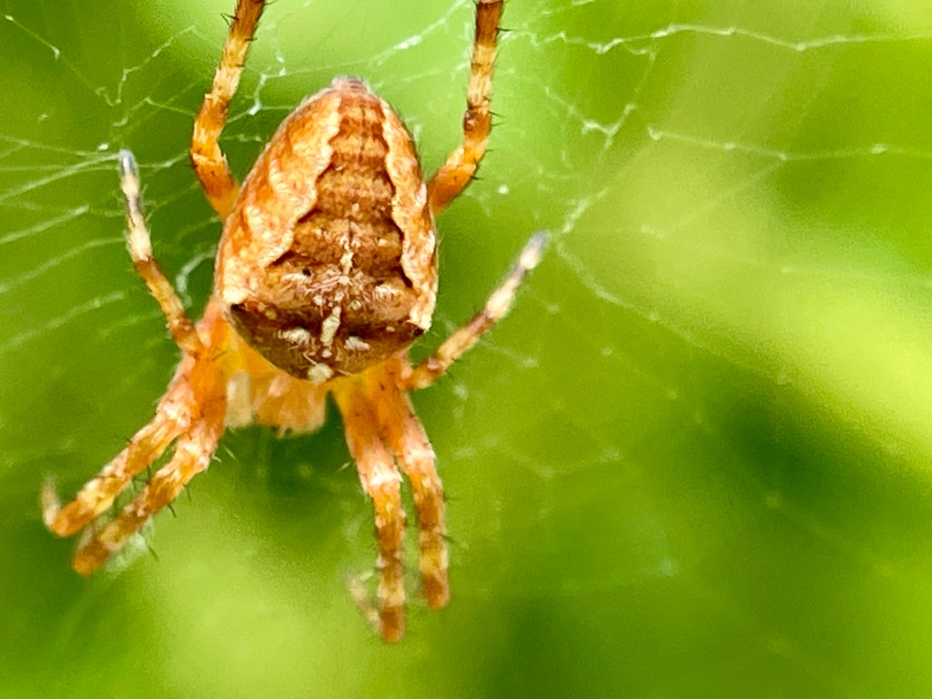 I wanted to share with you photos of two spiders I photographed recently. Location: San Juan Island, WA. Both are in the family Araneidae or what we know as Orb Weavers. The first (orangey one), was observed on a tomato plant July 31, 2021, and the 2nd (brown one) was observed yesterday evening, August 10, 2021, on some sort of wetland grass near my home.