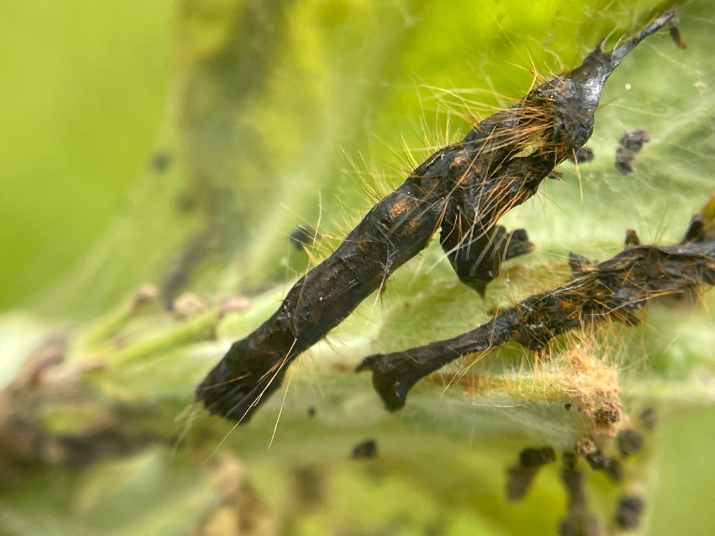 The Western Tent Caterpillar is probably one of the most studied and also one of the most loathed insects in the Pacific Northwest. I’m hoping to change attitudes by shining a light on some of the ecological facets of the species and how it connects to the larger food web. We often deem something a pest before really considering the whole picture. Is there anything good about a caterpillar eating leaves off a tree? It depends on a lot of factors. Why not take time to examine the web…and I’m not referring to the tent here either.